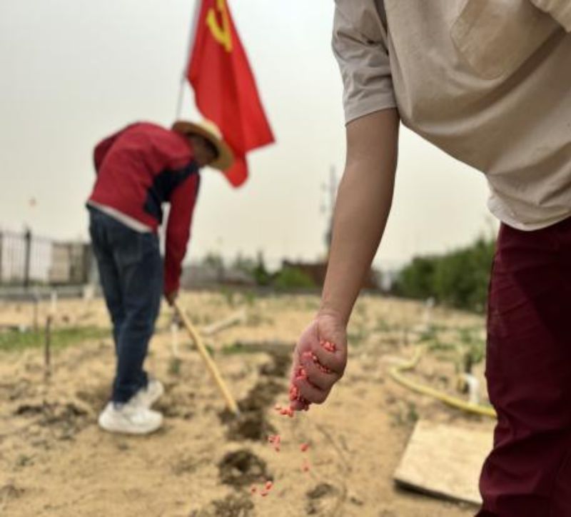 五月的皮山光伏電站春意盎然,處處迸發(fā)著生機(jī)和活力,在支部的號召下,電站全體黨員職工紛紛拿起鐵鍬、鋤頭,投入到植樹造綠的勞動中。他們挖坑、培土、澆水,每一道工序都做得認(rèn)真細(xì)致,以實際行動為沙漠充“植”增綠。隨著時間的推移,原本荒涼的沙漠戈壁上,一叢叢、一簇簇的綠色生命迎風(fēng)搖曳,綻放出綠色生機(jī)。