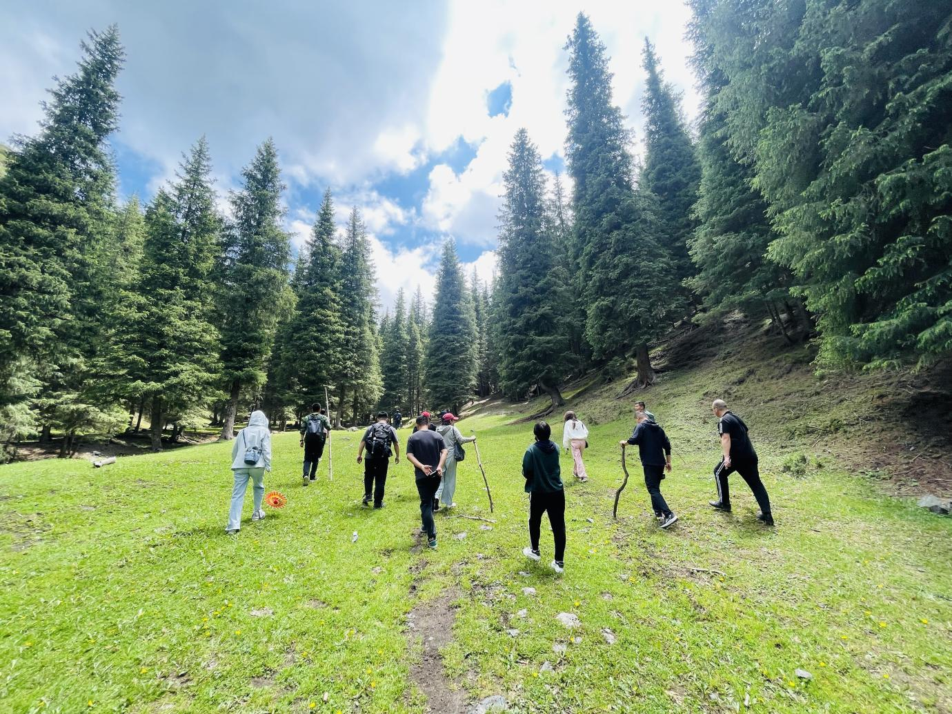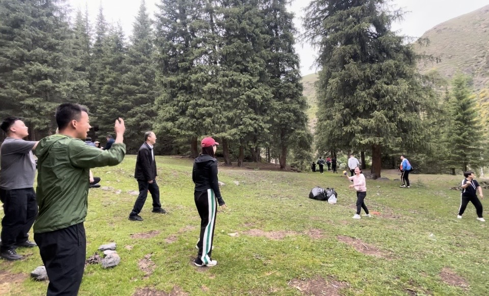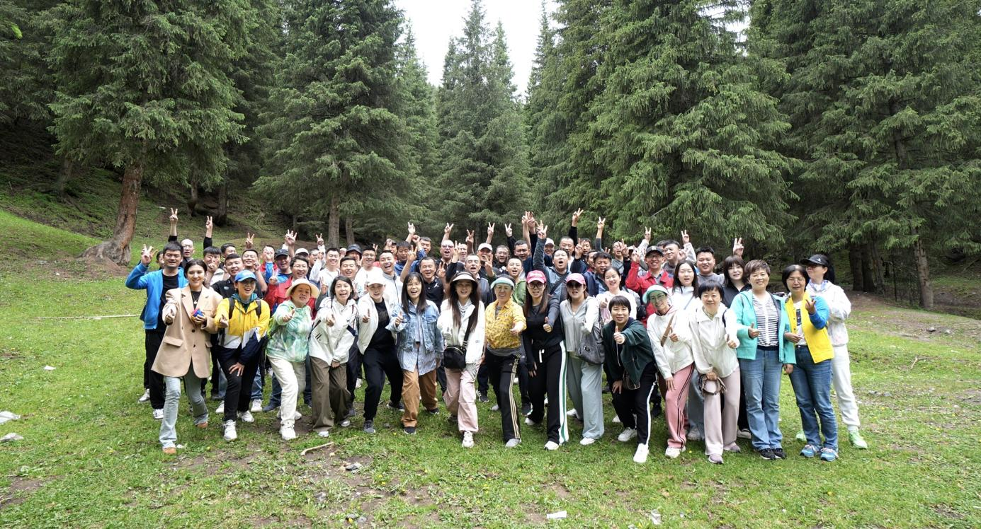 天山草場草色如茵、綠意盎然,如畫的風(fēng)景令人心曠神怡。大家健步走在徒步大道上,呼吸著新鮮的空氣,感受著大自然的風(fēng)光。一路上,大家邊走邊聊,時而駐足欣賞,時而選景拍照,歡歌笑語如影隨形。本次徒步行程近5公里,大家互相鼓勵、一往無前,經(jīng)過一個半小時的努力,終于順利抵達(dá)目的地。