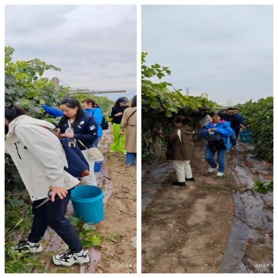 活動(dòng)第二站,來到三坪農(nóng)場玫瑰香葡萄采摘園。葡萄園內(nèi)一串串飽滿多汁、紫瑩瑩的葡萄掛滿了藤蔓,散發(fā)著誘人的果香。大家拿起工具井然有序的開始了采摘活動(dòng)。眾人三五成群,在田間地頭分工合作、密切配合,摘果、裝桶、搬運(yùn).....大家一邊分享采摘技巧,一邊饒有興致地暢談生活中的趣事,歡聲笑語在整個(gè)采摘園回蕩。