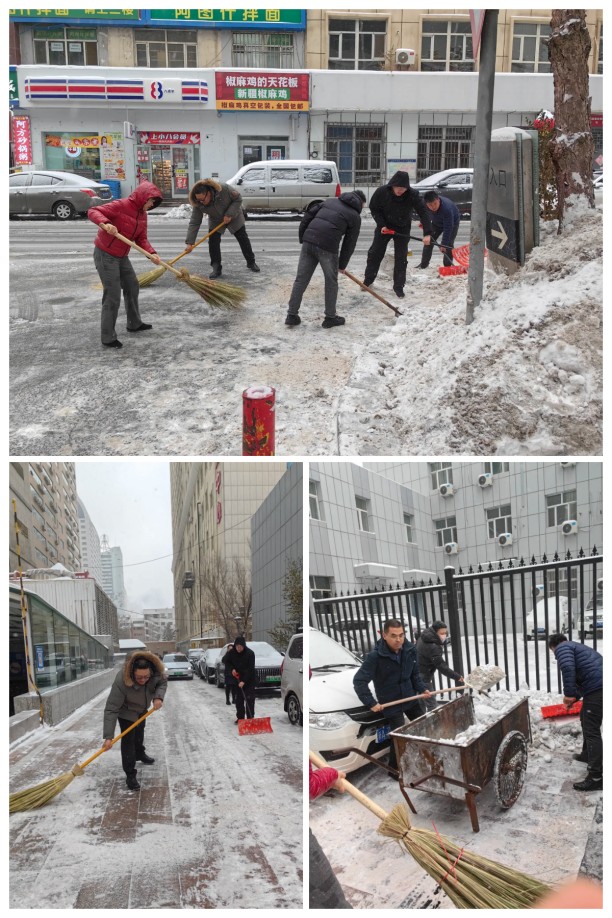 公司黨員志愿者一齊出動(dòng),清掃沿街商鋪路面積雪,志愿者們手持推雪板、掃帚等除雪工具,精神抖擻地奔赴公司周邊的積雪路段。盡管天氣寒冷,積雪深厚,但這絲毫沒有影響志愿者們的熱情和干勁。