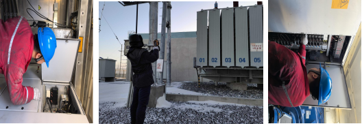 在暴風雪期間,風電場的應急響應機制發(fā)揮重要作用。當值人員發(fā)現(xiàn)Y2機組報三相電壓不平衡故障時,迅速行動,經(jīng)現(xiàn)場檢查確認為隔離刀閘脫落故障。風電場立即組織人員準備工器具,結合風速預測和現(xiàn)場風速變化情況,利用倒風向的窗口期進行了倒閘操作,并利用登高車對Y2機組隔離開關進行了處理。整個過程,從停送電操作到故障處理,僅用了20分鐘,完美的詮釋了什么叫做“風能速度”。