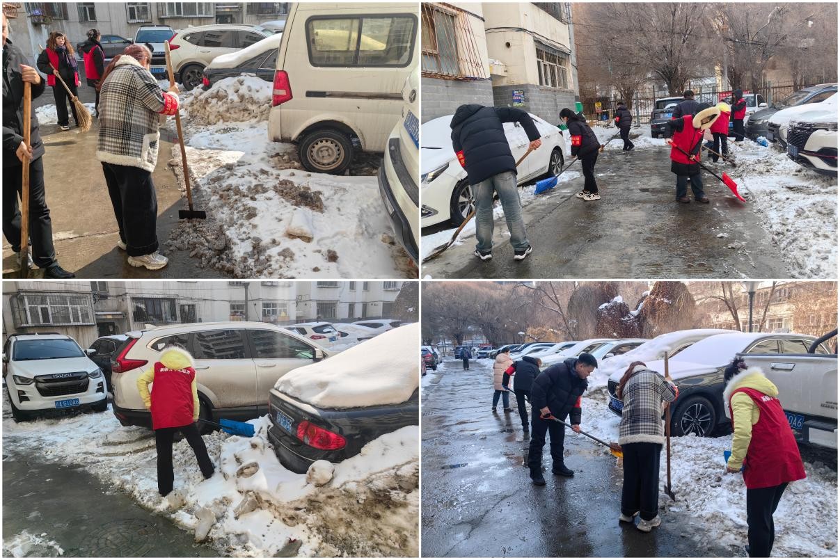3月5日上午,烏魯木齊市突降大雪,老舊小區(qū)道路積雪結(jié)冰嚴(yán)重,給居民出行帶來安全隱患。為切實(shí)踐行“我為群眾辦實(shí)事”,保障大家的出行安全,風(fēng)能公司迅速響應(yīng)昆明路社區(qū)號召,組織黨員干部職工迅速行動(dòng),與社區(qū)志愿者分成多個(gè)小組,帶上掃帚、鐵鍬、推雪板等清潔工具,對公司周圍老舊小區(qū)的環(huán)境衛(wèi)生及路面積雪進(jìn)行全面整治。隨著中午溫度回升,部分積雪融化導(dǎo)致路面濕滑、泥濘不堪,且小區(qū)設(shè)施老舊、缺乏專業(yè)清雪設(shè)備、這給清掃工作帶來了極大的不便。但志愿者們干勁不減,大家相互配合、齊心協(xié)力,有人用鐵鍬鑿開角落處堆積的厚重冰層,三、兩人合力推運(yùn)積雪、冰層至集中點(diǎn),還有人拿著掃帚清掃殘留的雪渣,防止路面再次結(jié)冰打滑。經(jīng)過數(shù)個(gè)小時(shí)的奮戰(zhàn),及時(shí)消除了老舊小區(qū)因積雪結(jié)冰帶來的安全隱患,小區(qū)路面環(huán)境煥然一新。