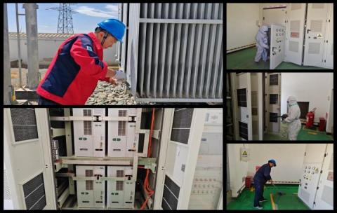 工作開展前,運維人員嚴格依照既定工作方案,遵循安全規(guī)程,認真辦理相關工作票,并提前準備好所需工具,為后續(xù)工作做了充分準備。在停電窗口期,檢修人員頂著戈壁灘的滾滾熱浪,爭分奪秒地推進SVG一、二次側設備清灰作業(yè)。他們身著厚重的工作服,佩戴防護手套與護目鏡,全身心投入到緊張的工作中。作業(yè)時,他們小心翼翼地拆卸設備外殼,手持高壓氣泵專注清理每個縫隙,遇到頑固積垢,便用小刷子配合氣泵仔細清掃。對于新濾網,他們仔細核查尺寸與規(guī)格,確認匹配后再精準安裝。同時,用酒精棉細致擦拭元件表面,連邊角縫隙都不放過,每一項操作都力求精準規(guī)范。針對灰塵密集部位,更是進行反復清除,絕不放過任何一處灰塵聚集點。