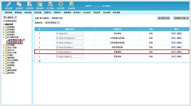 首先獲取在線客服安裝代碼,登陸帝國(guó)cms后臺(tái),進(jìn)入模板管理》公共模板變量》管理模板變量, 找到footer模板,點(diǎn)擊“修改”,將在線客服代碼復(fù)制粘貼到編輯框中的合適位置,然后點(diǎn)擊提交。