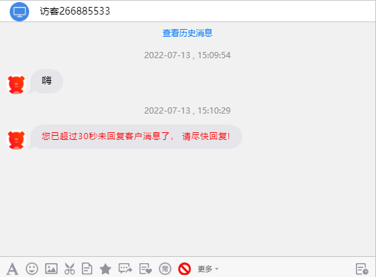 PC訪客端上線了消息聲音提醒,可提醒訪客快速瀏覽消息并回復(fù);點(diǎn)擊喇叭圖標(biāo)可開啟和關(guān)閉消息聲音提醒。